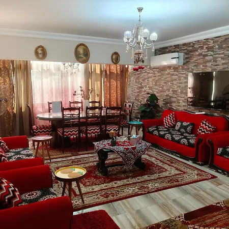 A fully furnished kitchen with a microwave, a fridge, and kitchenware is available in the apartment, along with tea and coffee making equipment. Guests are accommodated within 10 km of Cairo International airport. Guests are invited to relax on a terrace.